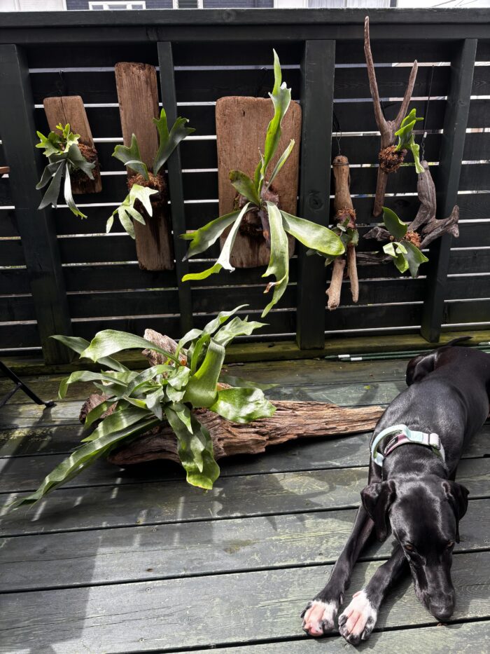 こちらは用土の代わりに水苔を使い、鉢の代わりに流木に釣り糸で巻きつける飾り方にハマっています。